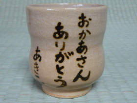 とは器にメッセージ等を書かれたものに透明釉だけを掛けたものです。